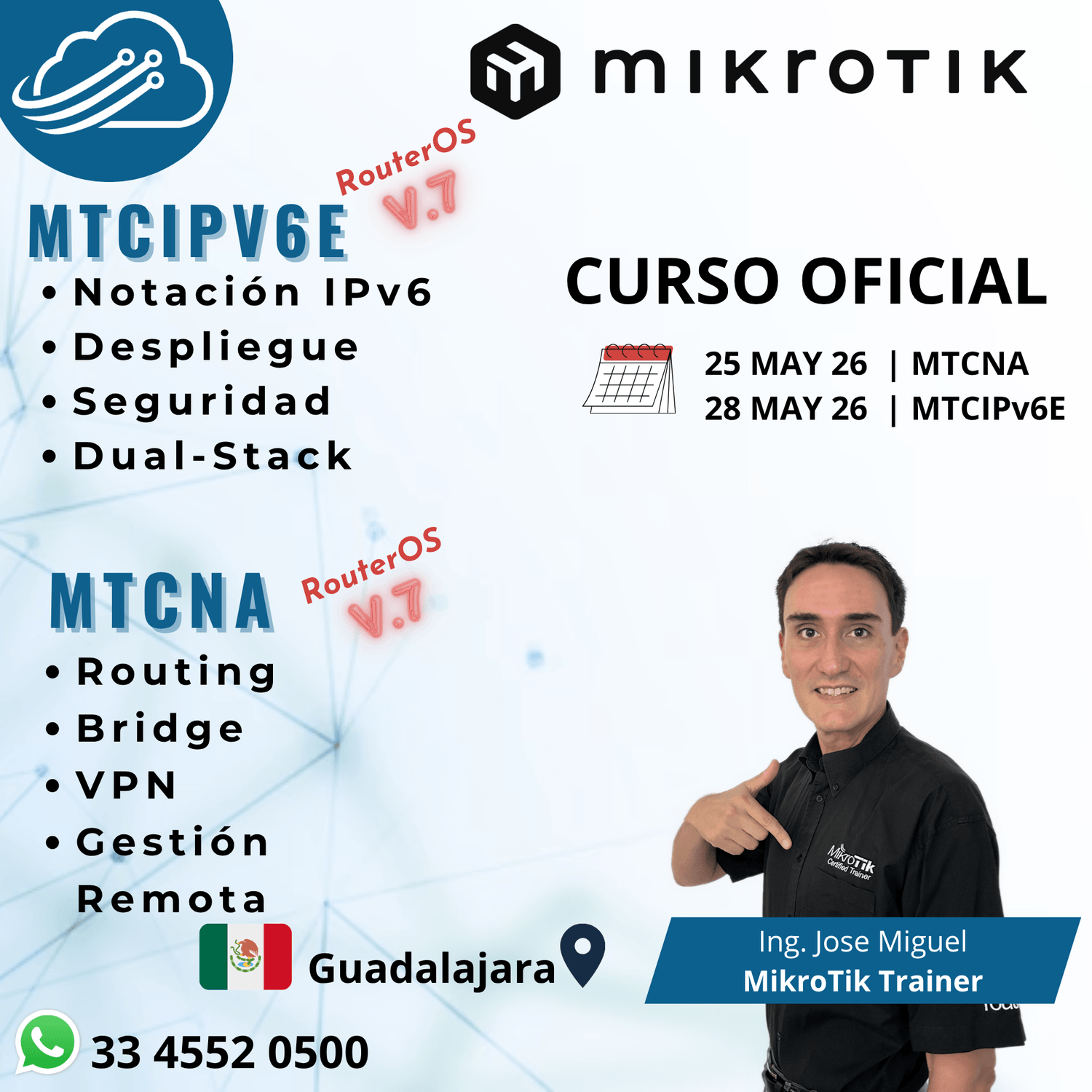 Cursos presenciales y oficiales de MikroTik en Guadalajara, Jalisco, México
